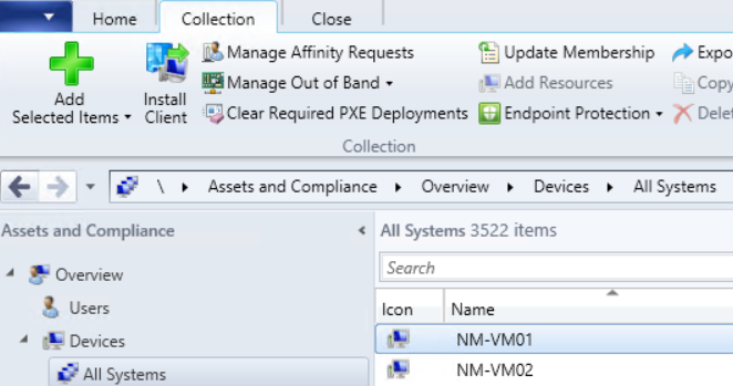 As you can see, the ribbon options look like they are for devices, but it is still on the Collection tab. If you aren’t paying close attention and select “Add Selected Items”, you will be imaging All Systems instead of the VM I have selected. I was talking with Nash Pherson, and he said he wished the Product Team just re-named the option Add Selected Devices or Add Selected Collections, based on what you are on. I said he didn’t have to wait for the product team, just change the names in the XML! Since I knew Nash wouldn’t accept anything but an automated solution to do this, I wrote a script to change the names.
